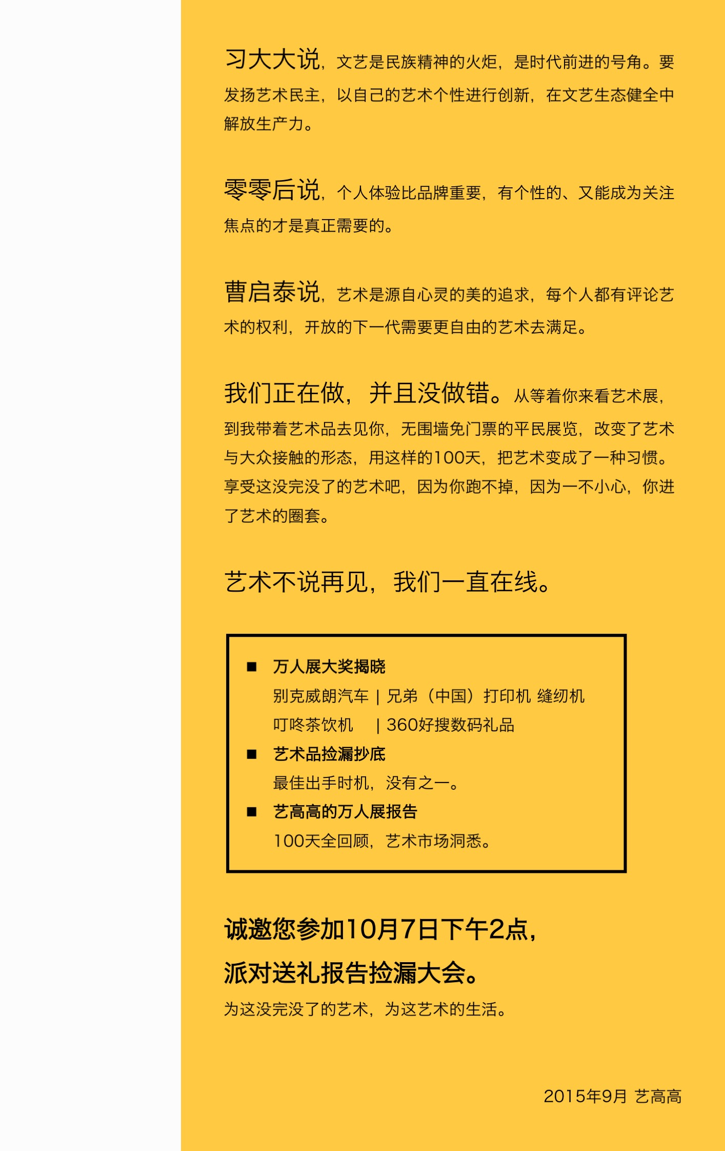 万人展的100天!艺术不说再见,我们一直在线。