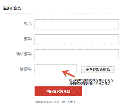 2.输入手机号码,并填入验证码完成注册。