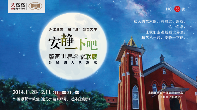 2014年的末月,是时候了,安静一下吧,艺术。。 艺高高artgogo与外滩源携手,在外滩源的联合教堂中构筑起了一个版画世界,或许只有在这样的环境中,才能真的使人放下浮躁停下脚步,深深注视着