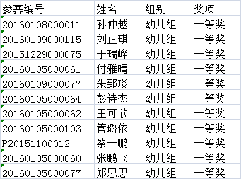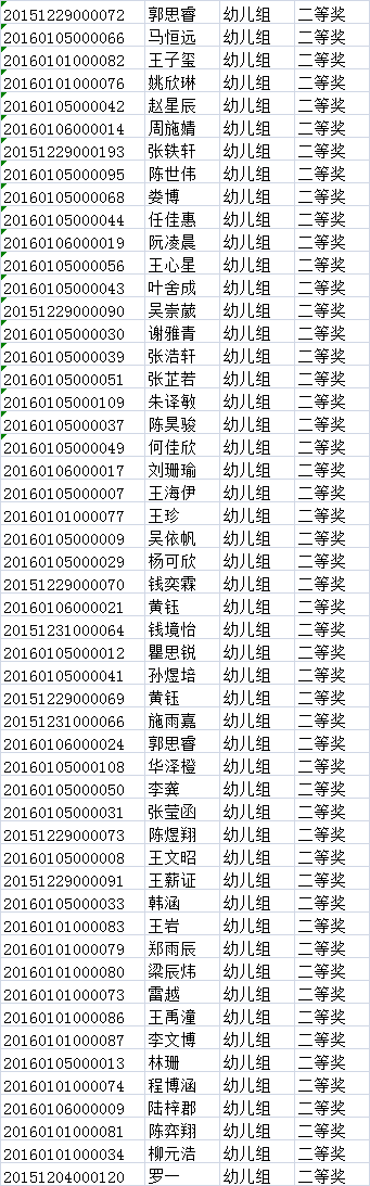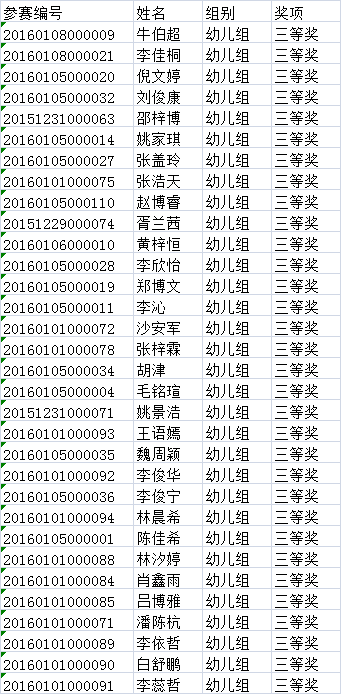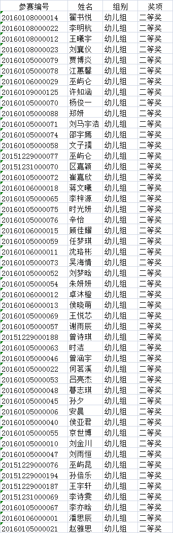 第三批幼儿组获奖名单: