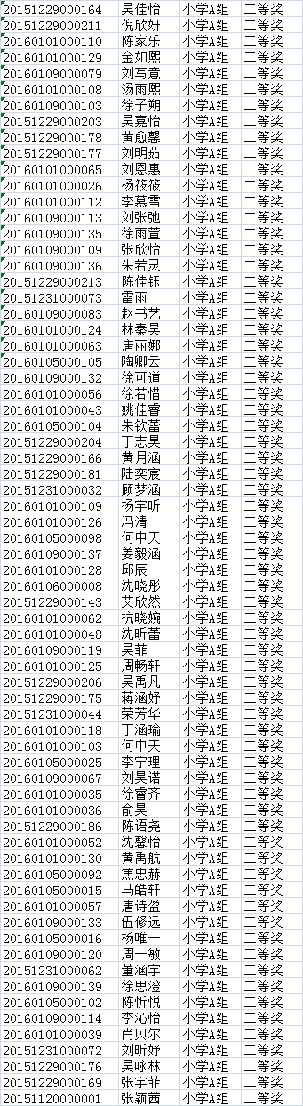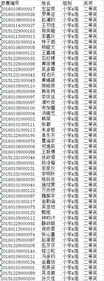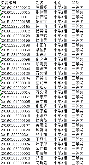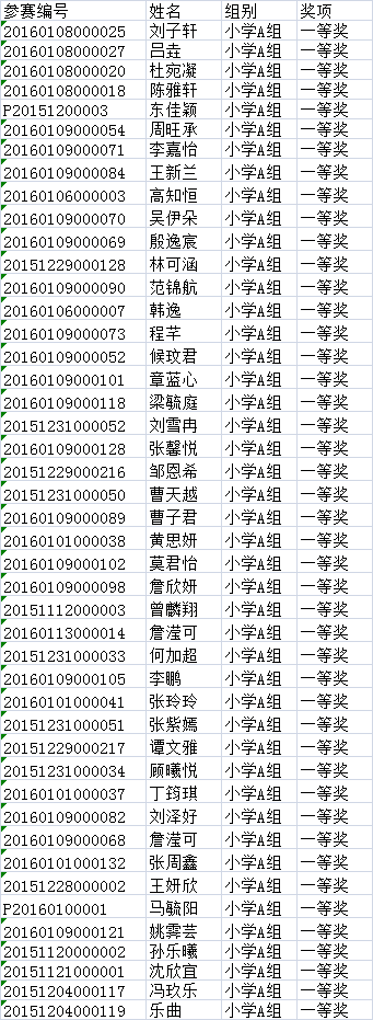 第三批小学A组获奖名单