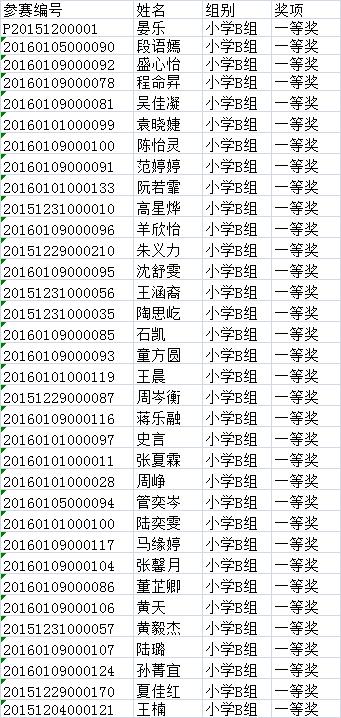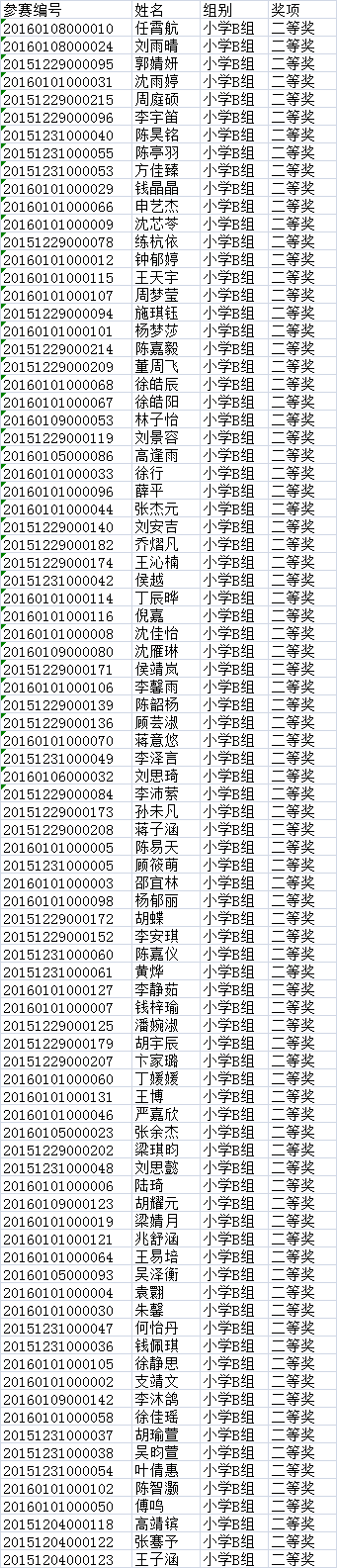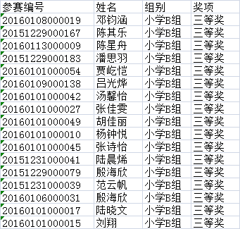 第三批小学B组获奖名单