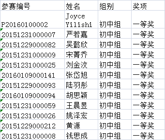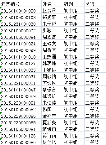 第三批初中组获奖名单