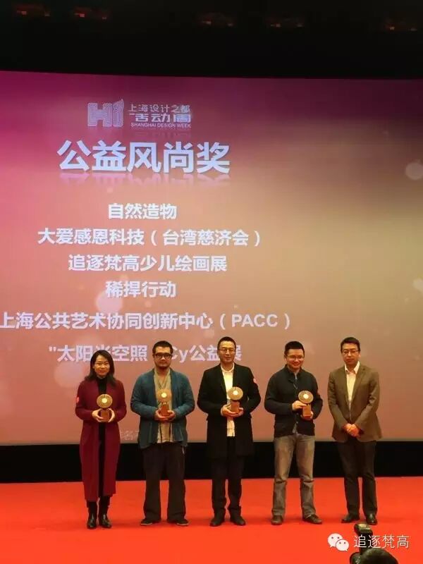 11月10日晚,2015上海设计之都活动周答谢颁奖典礼在沪举行,追逐梵高少儿绘画大赛展区荣获“2015上海设计之都活动周优秀展区公益风尚奖”。