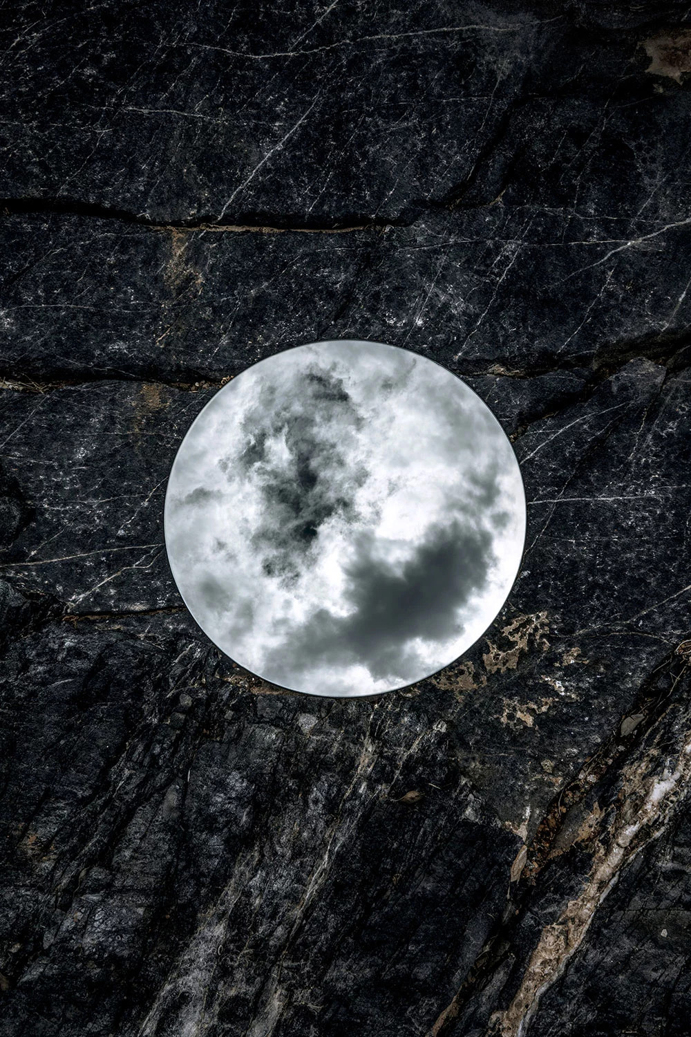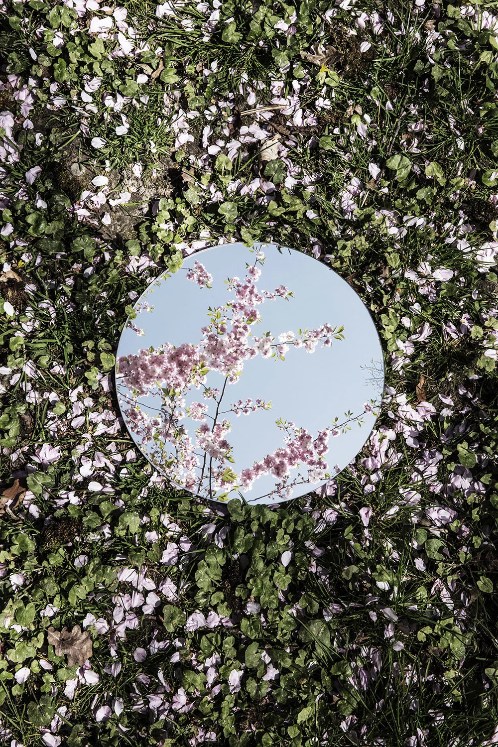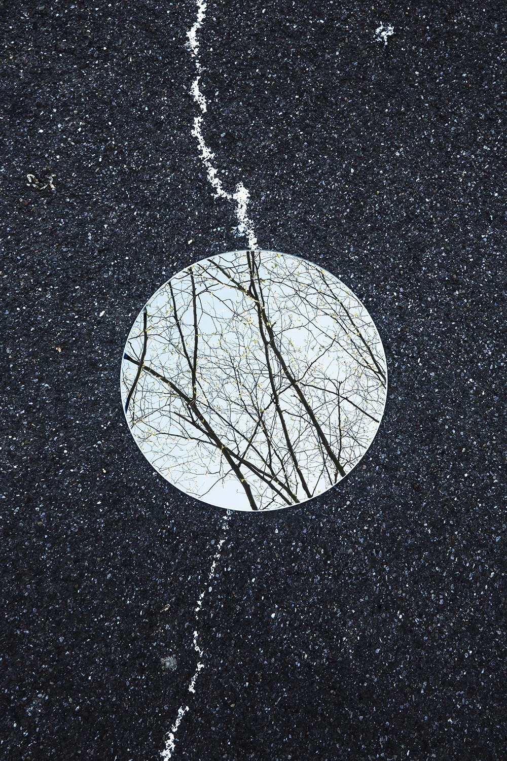利用一面圆镜圆形镜子,放置在户外,