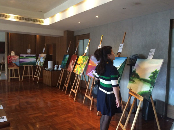 活动还未开始,就有不少嘉宾到场欣赏画作,也有嘉宾看到喜欢的画作就忍不住用手机拍下来。手机拍下来不如直接买回家哦,还可以献出自己的一份爱心!