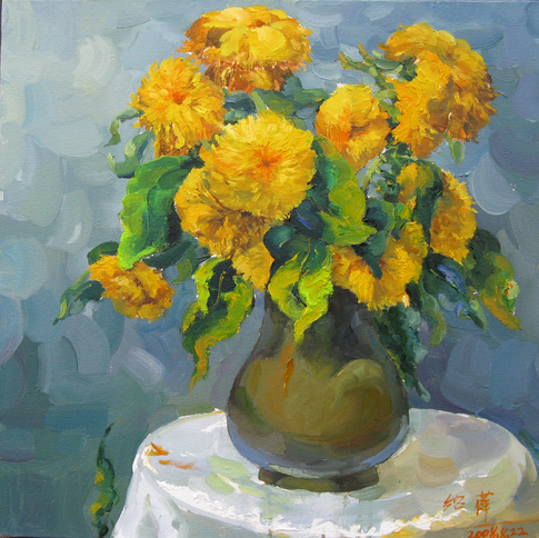 晌午 葵花 油画