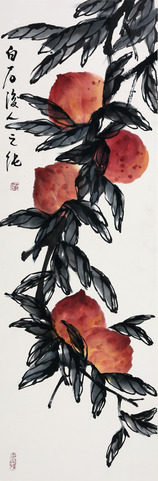 以蟠桃入画福寿绵绵,传统技法融合写生创意,本系列一题三幅,两桃一鹤。是之纯先生渐入佳境之作~