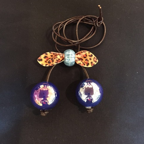 实物尺寸:单颗坠子直径3cm,链子总长42cm,链子材质为皮绳