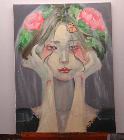 现在全球变暖,污染等生态问题吞噬着我们,乱穿衣服的季节让人们头疼。 画作意境:传说中的春姑娘常常来的不那么准时,走的悄无声息,但是这个暗黑系的春姑娘正在思考着接下来要做什么恶作剧,一层薄薄的头纱渲染了神秘的色彩,接下来要发生什么意想不到的事呢。