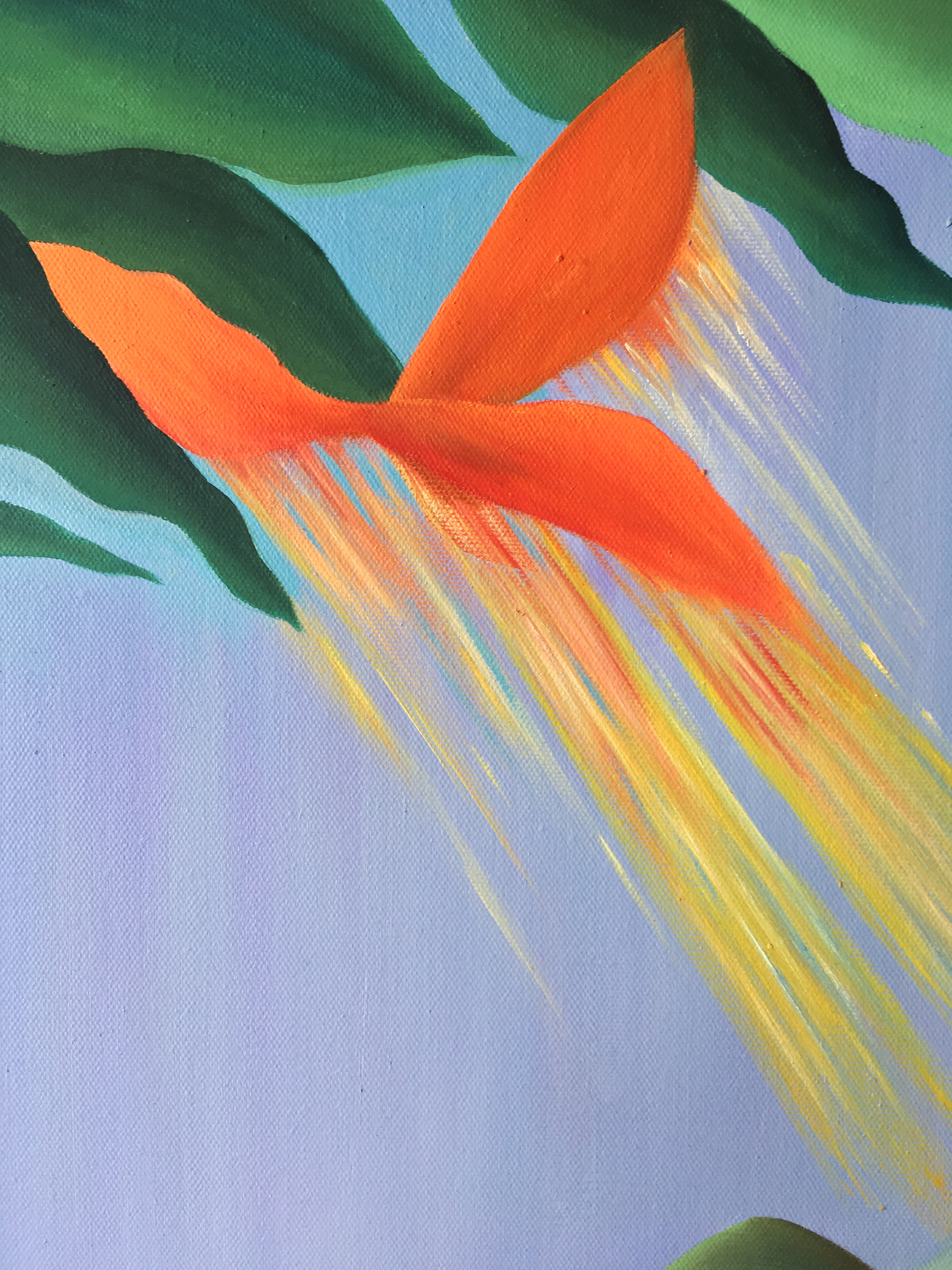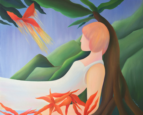 这张画是午睡前脑中的残影,在一个无名树下静静地靠着,所有的疲惫和多余的想法都变成一只火蝴蝶,飞向远方,燃尽在空中。