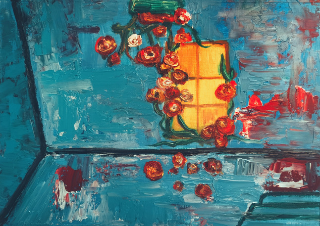 在疫情期,每个人都被灾难的悲痛所感染,难以避免地陷入混乱与悲伤。蓝色房间里的无根之花,是这混乱内心的安慰。